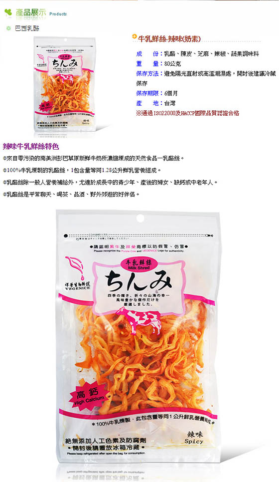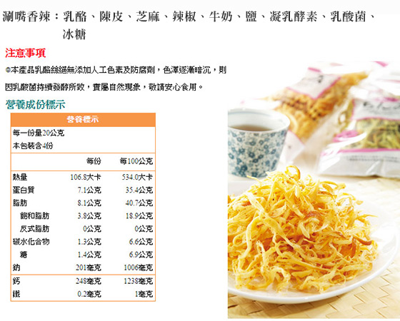 涮嘴香辣:乳酪、陳皮、芝麻、辣椒、牛奶、鹽、凝乳酵素、乳酸菌、冰糖