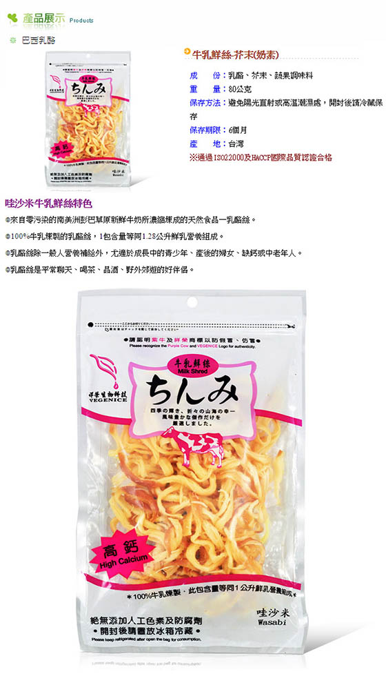 哇沙米:乳酪、芥末、牛奶、鹽、凝乳酵素、乳酸菌、冰糖