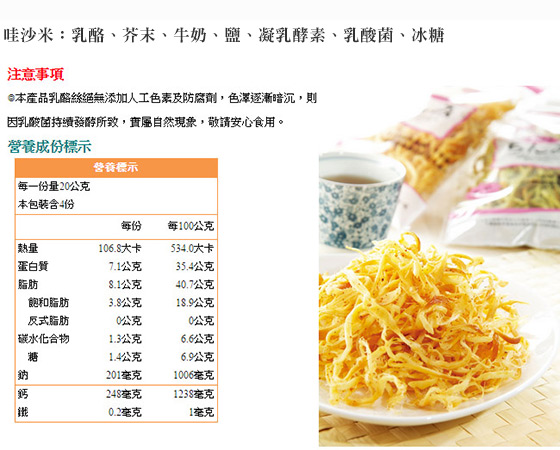 經典原味:乳酪、牛奶、鹽、凝乳酵素、乳酸菌、冰糖